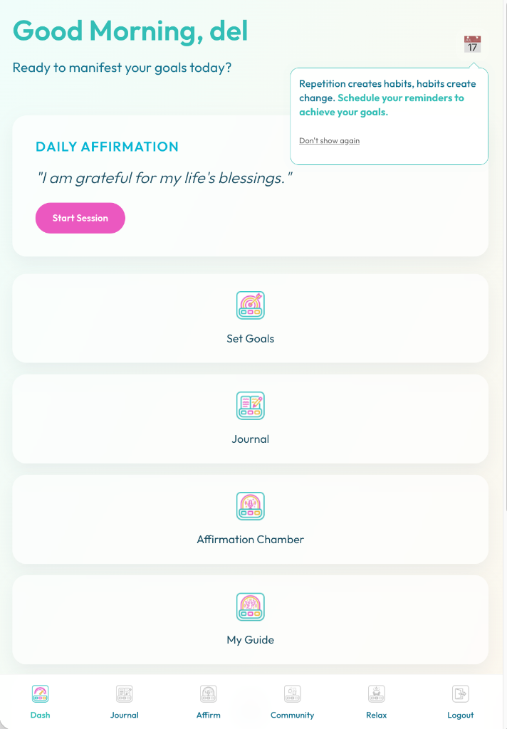 - Spirit Guide Name: Give your AI mentor a name (e.g., "Destiny," "Coach," "Athena"). This personalizes your interactions and strengthens the bond.