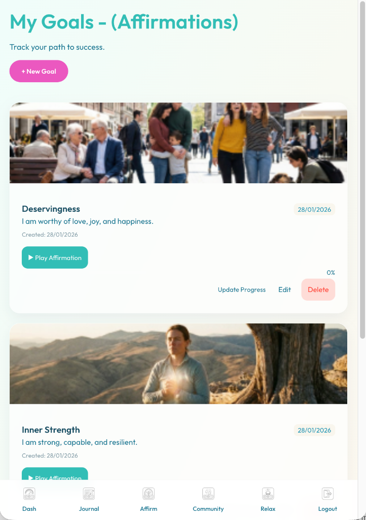 Your created goals appear as cards: