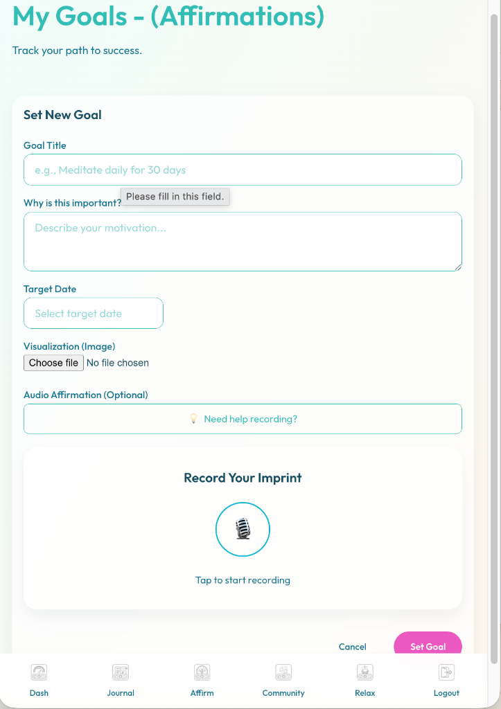 When you hear your own voice stating a truth (even a future one), your brain engages differently than when reading text. When you pair that with a visual image, you activate the creative subconscious. Imprint connects these dots to turn "wishes" into "expectations."